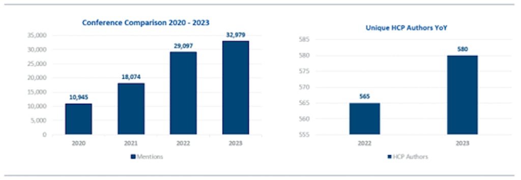 When it comes to the overall health of HCPs discussing conferences and other HCP facing events, the latest ASCO has seen not only consistent increases in year over year posts in general, but unique HCP authorship increasing this year from last. We will be monitoring conferences later in the year for the same changes and if Threads has an impact over time.